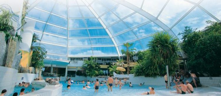 Aqualibi et son ambiance Caraïbe, une eau à 29° et de nombreux toboggans.