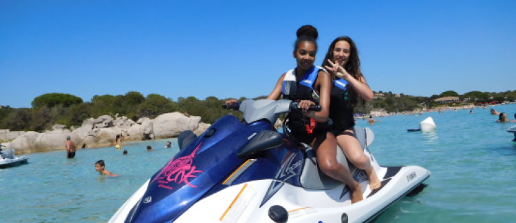 Journée paradisiaque à la plage avec une balade en jet-ski encadrée par des moniteurs professionnels.