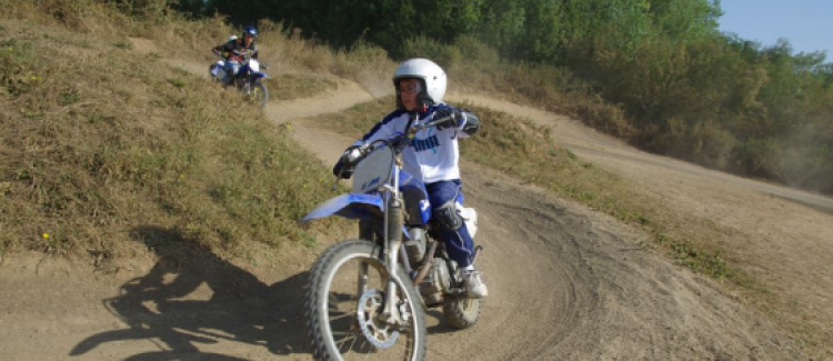 Ce stage peut aussi bien accueillir des débutants que des jeunes plus expérimentés. Les jeunes pratiquent 5 séances de Moto par semaine : 2h de Moto avec au minimum 1h30 de roulage. La répartition des groupes s'effectue par âge et niveau de pratique. Les contenus et machines sont toujours adaptés au niveau des participants, seules les règles de sécurité sont les mêmes pour tout le monde. Les motos utilisées sont : Piwi 50, Piwi 80, TTR 125 et XR 100. Un stage intensif Moto avec 3 séances supplémentaires, soit 8 séances sur la semaine, est proposé en option.